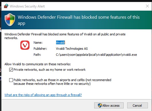 as I posted here Glasswire can't connect to local server help - #21 by Kels it occurred the same issue to me when I installed GlassWire Free some years ago. In that case it was a 3rd party firewall that blocked the connection between GlassWire client and its service. As user ittroll wrote here it could be also a security app, many AV suites includes a firewall too (Kaspersky for example). Maybe it could be also the Windows Firewall blocking an incoming connection between the GlassWire client and the service. Normally the Windows Firewall should popup an alert when a incoming connection would occur, like the screenshot I’ve attached below, but you can check the incoming connection rules in Windows Firewall with Advanced Security panel (Incoming connection rules tab on the left). If you find there some GlassWire entry which is disabled you can enable it and see if that will work. The same with Outgoing connection rules tab.
