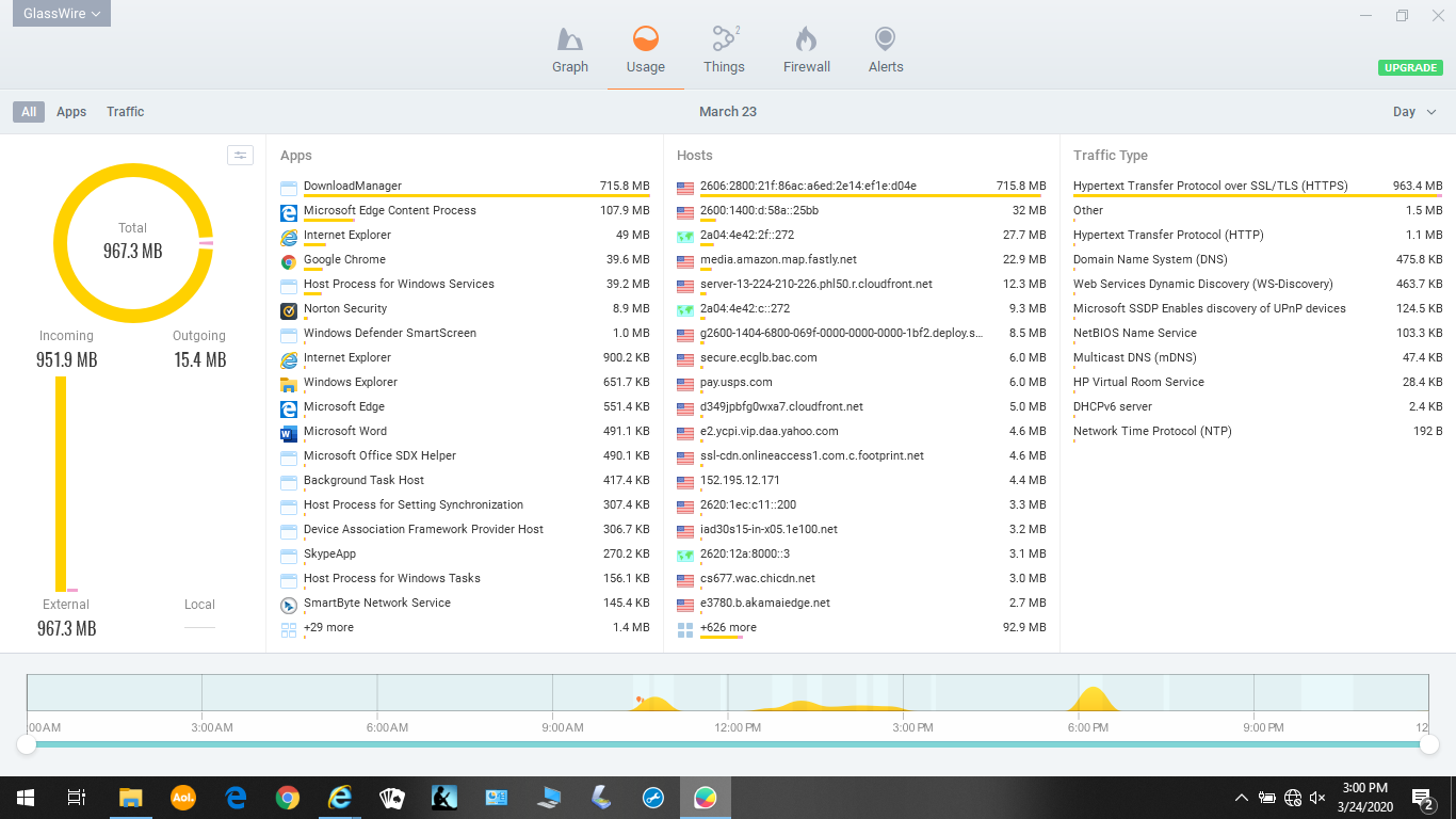 I downloaded Glasswire in an attempt to identify what is causing our excessive Data Allowance consumption on Hughesnet. I am very tech unsavvy. Can anyone offer a simple method for interpreting the data to achieve this goal? Thanks!