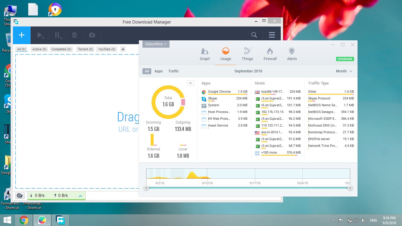 I’d like to see what all his happening under Graph/Apps when you’re using the “Free Download Manager” and you can usually see what app/browser the data is flowing through.