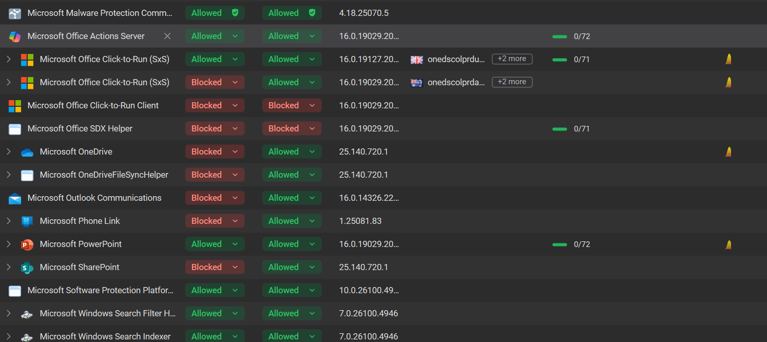 Some of these are going to be important processes that I may never notice are now being blocked, such as “Microsoft Office Click-to-run Client”.
