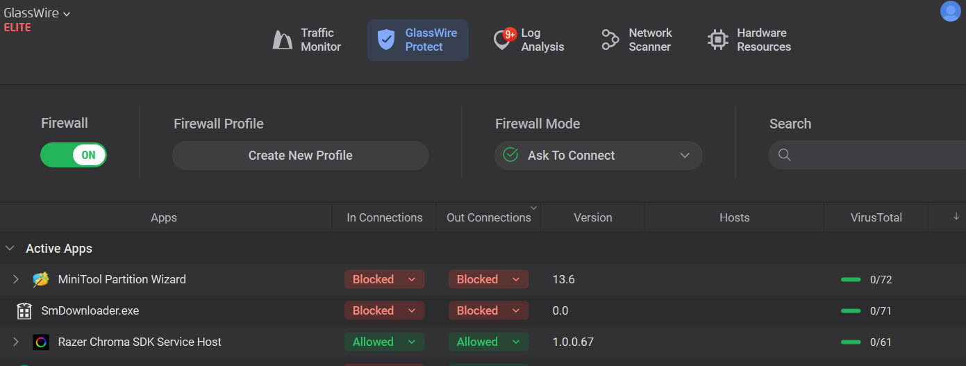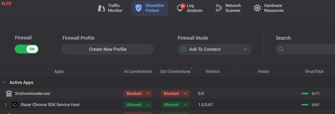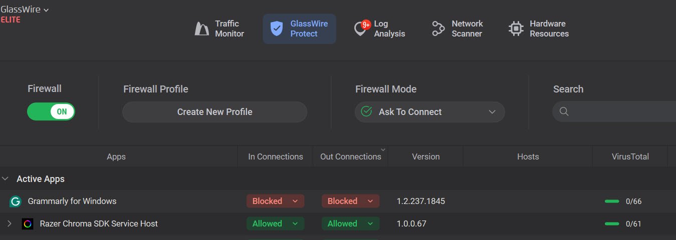 Okay, I am still banging my head against the wall. And GlassWire is still seriously broken. Using in “Ask to connect” and with VirusTotal. GlassWire 3.8.1030.